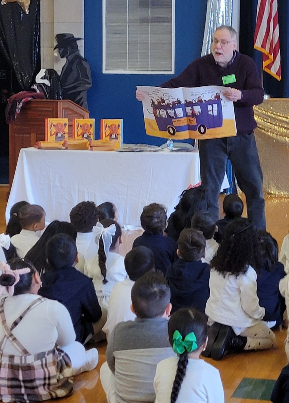 Full-day programs typically feature four to six 40 to 50-minute sessions with roughly fifty to a hundred kids each. This veteran classroom teacher knows how to engage my young audience. I tailor my presentations to different grade levels, encouraging preschoolers and kindergartners to sing and shout and act out my books while drawing on fifteen years of experience as a children’s editor to chat with older elementary students about how books are made. I am fully vaccinated and have enjoyed more than three dozen successful full-day visits to districts in New Jersey, New York State, Delaware, Maryland, and Virginia.